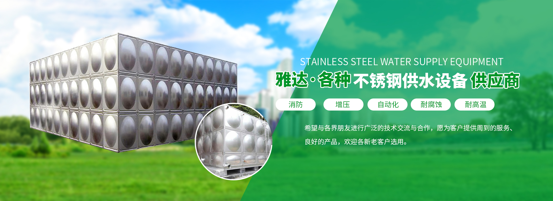 不銹鋼水箱 水箱板材 智慧標準泵房 大模塊裝配式水箱 生活供水設備 不銹鋼隔油池/油水分離器 消防泵站一體式設備 污水提升預制泵站 水箱消毒器 氣壓罐 消防穩壓設備